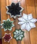 Transform your holiday decor with the Holiday Stars sewing pattern by Poorhouse Quilt Designs. Ideal for crafty individuals and DIY enthusiasts, this pattern allows you to create stunning 6 or 8-point stars in sizes ranging from 5" to 12". Perfect for adding a festive touch to your tree, gifts, or home decor, these stars are easy to make and require no templates, making them accessible for all skill levels. The vibrant fabrics and intricate designs bring a burst of holiday cheer, while the included instructions ensure a seamless crafting experience. Elevate your seasonal decorations or create heartfelt gifts with these charming, customizable stars.